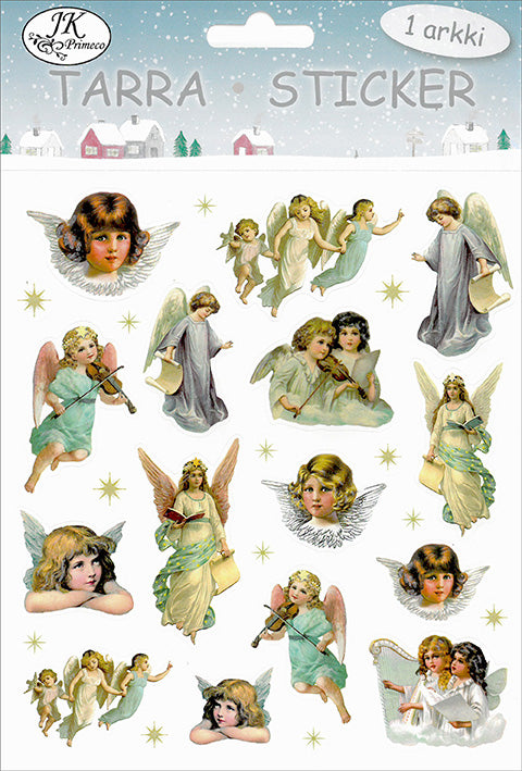 Tarra-arkki askarteluun ja koristeluun. Pakkaus sisältää yhden arkin erilaisia paperisia tarroja glitterillä. Arkin koko on n. 17cm x 15cm.